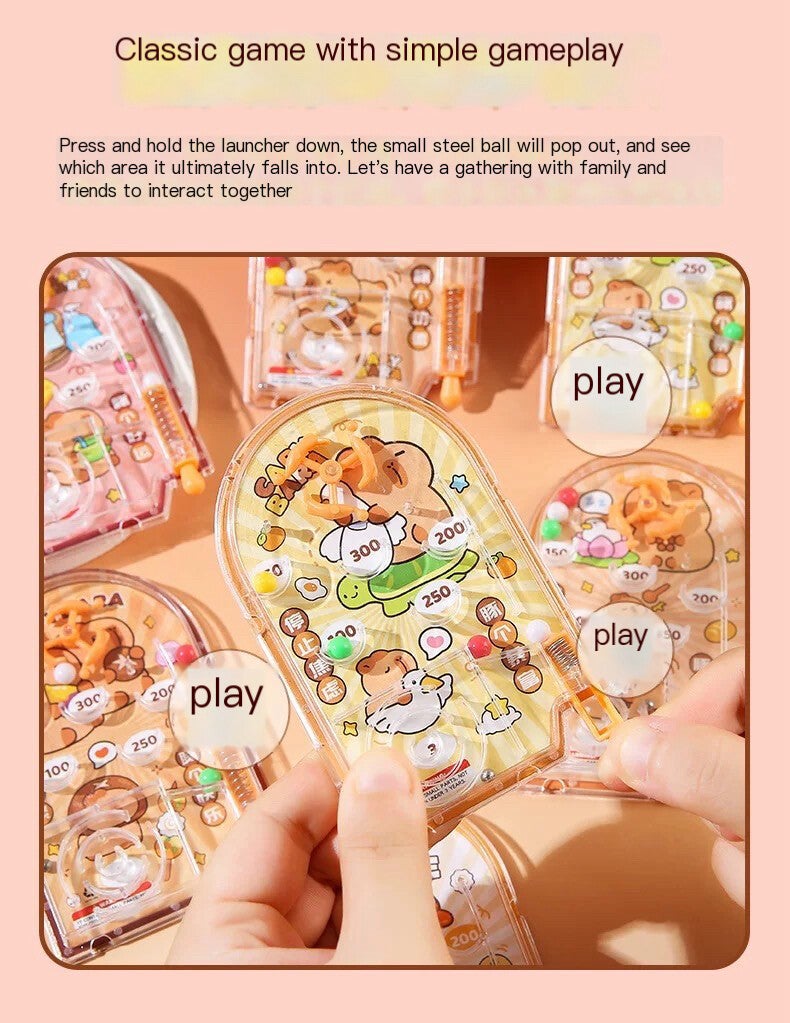 With this classic tabletop action game, get your kids to put down their electronic devices and enjoy the fun of playing. The catapult helps players launch the ball into the scoring area.